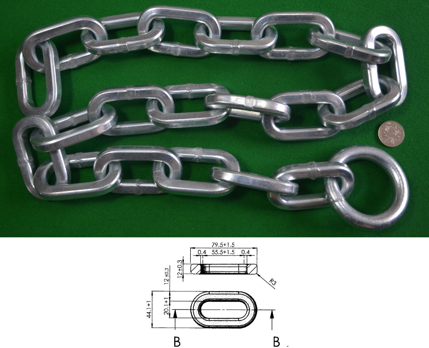 9.5mm方合金鋼鎖鏈(環保鋅電鍍)